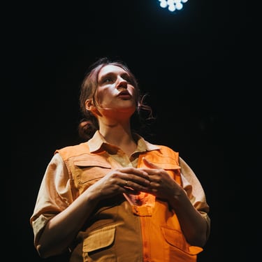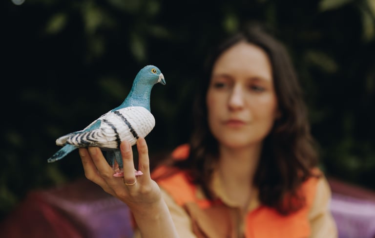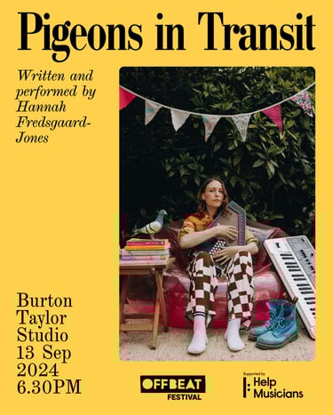 Pigeons in Transit is a daring solo performance by composer and songwriter Hannah Fredsgaard-Jones. The play intricately intertwines the realms of climate change, conspiracy theories, pigeons and a resilient hope for the future.