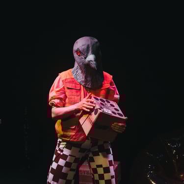 A woman's surreal journey unfolds as she receives daily pigeon deliveries, exploring climate change, conspiracy and hope in Hannah Fredsgaard-Jones' bold music-filled solo performance.